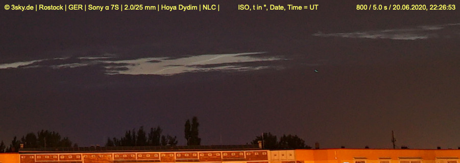die NLCs der Nacht 20./21.06.2020 waren im Abendsektor und bis knapp jenseits der astronomischen Mitternacht sichtbar.