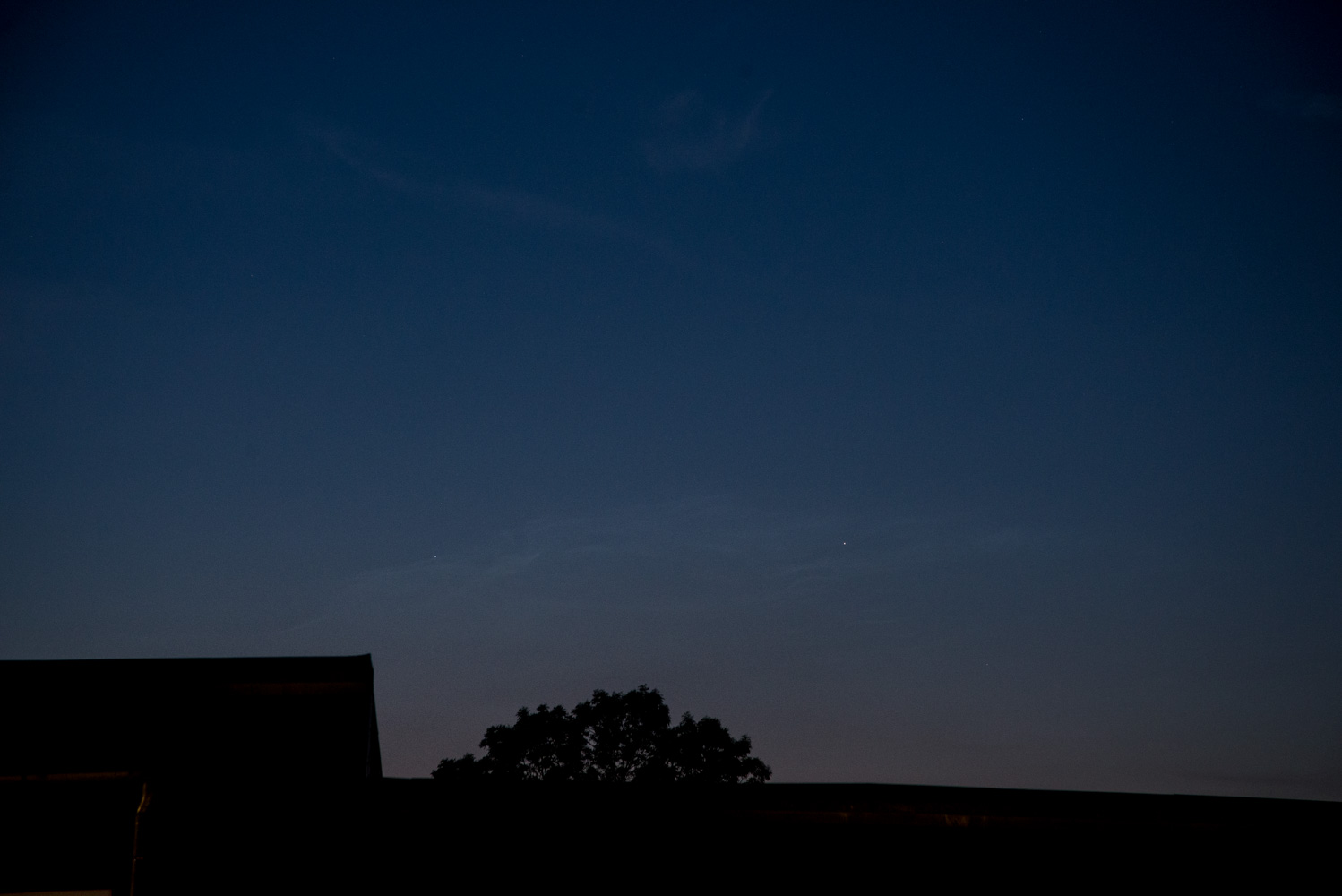 Auf der ersten Aufnahme um 23:40 Uhr MESZ waren leichte NLC-Strukturen Richtung 295° West auszumachen. Die Höhe betrug etwa 10°.