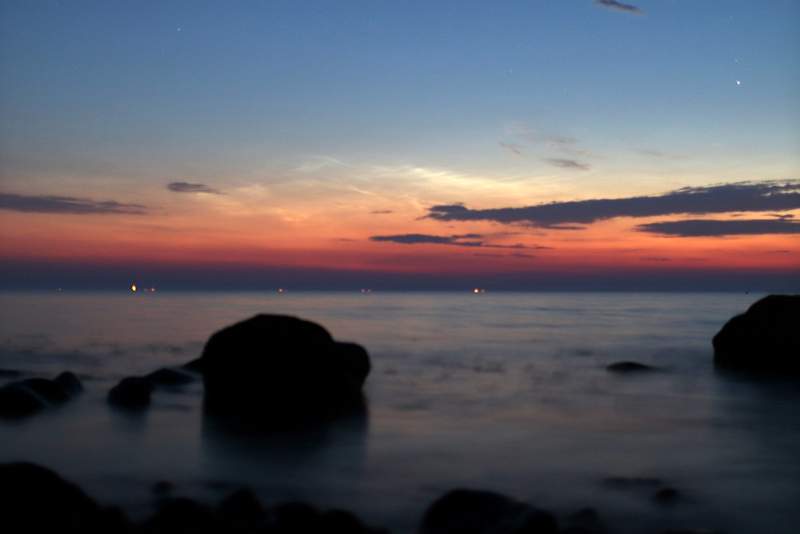 Um Mitternacht herum wieder NLC westlich der Insel.