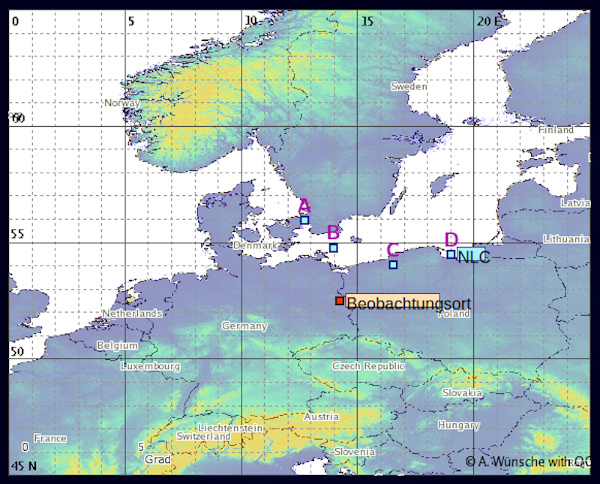Unterscheidet sich nicht wesentlich von Stefans Auswertung viewtopic.php?f=34&t=59495#p230413, bringt die NLC-Südkante aber noch eine Nuance weiter nach Süden. Die kleinen Differenzen lassen sich aus der (diesmal) "pole position" von Obersdorf als Beobachtungsort, aber auch aus dem gegenüber den üblichen Bayersensor-Kameras kontrastreicher registrierenden uralt-Foveon-Sensor-Bildaufzeichnungssystem erklären.