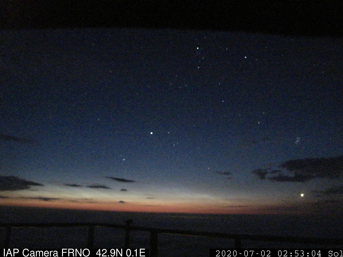 Am Morgen haben es die NLCs wieder auf die IAP-Kamera "FRNO" auf dem Pic du Midi de Bigorre geschafft: