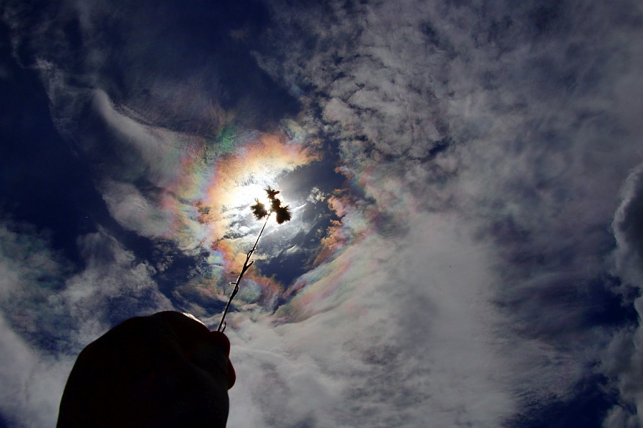 Heute zeigte sich auffällig heftiges Irisieren um die Sonne gegen Nachmittag.