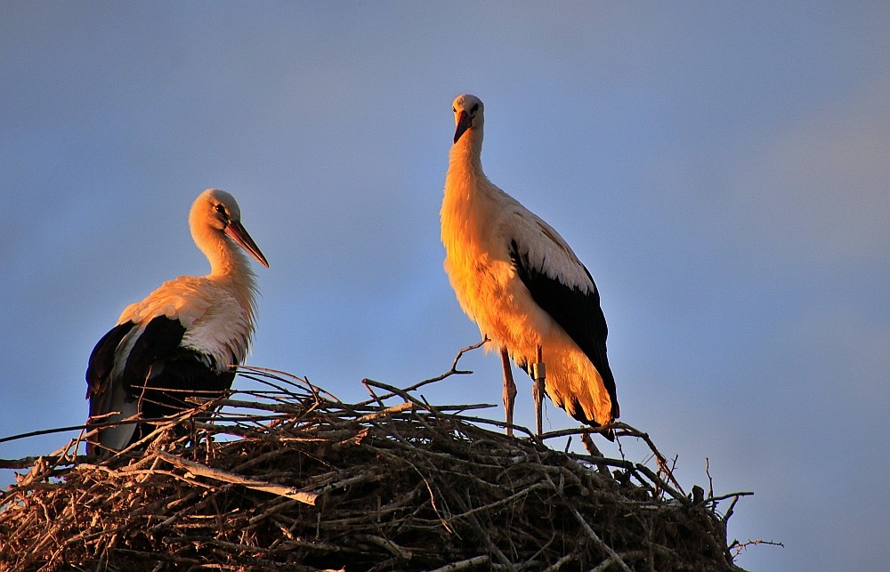 Heute Morgen gab es in Schkeuditz ein nettes Morgenrot und "Alpenglühen" an den Flugzeugen und Störchen