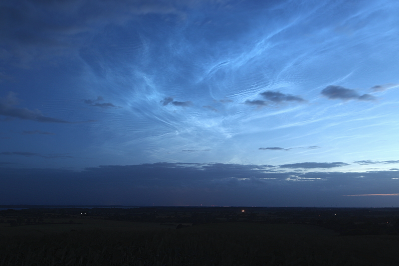 Das erste Foto am Standort habe ich um 22:33 aufgenommen, Sichtbarkeit ab etwa 22:15. Das Letzte um 23:30, da waren die NLCs nur noch im Norden am Horizont zu sehen.