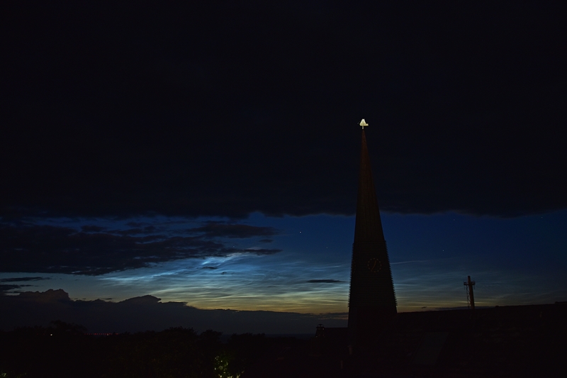NLCs oberste hier sichtbare Struktur, freihändig vom Dach aus fotografiert, kurz nach 22 Uhr MESZ.