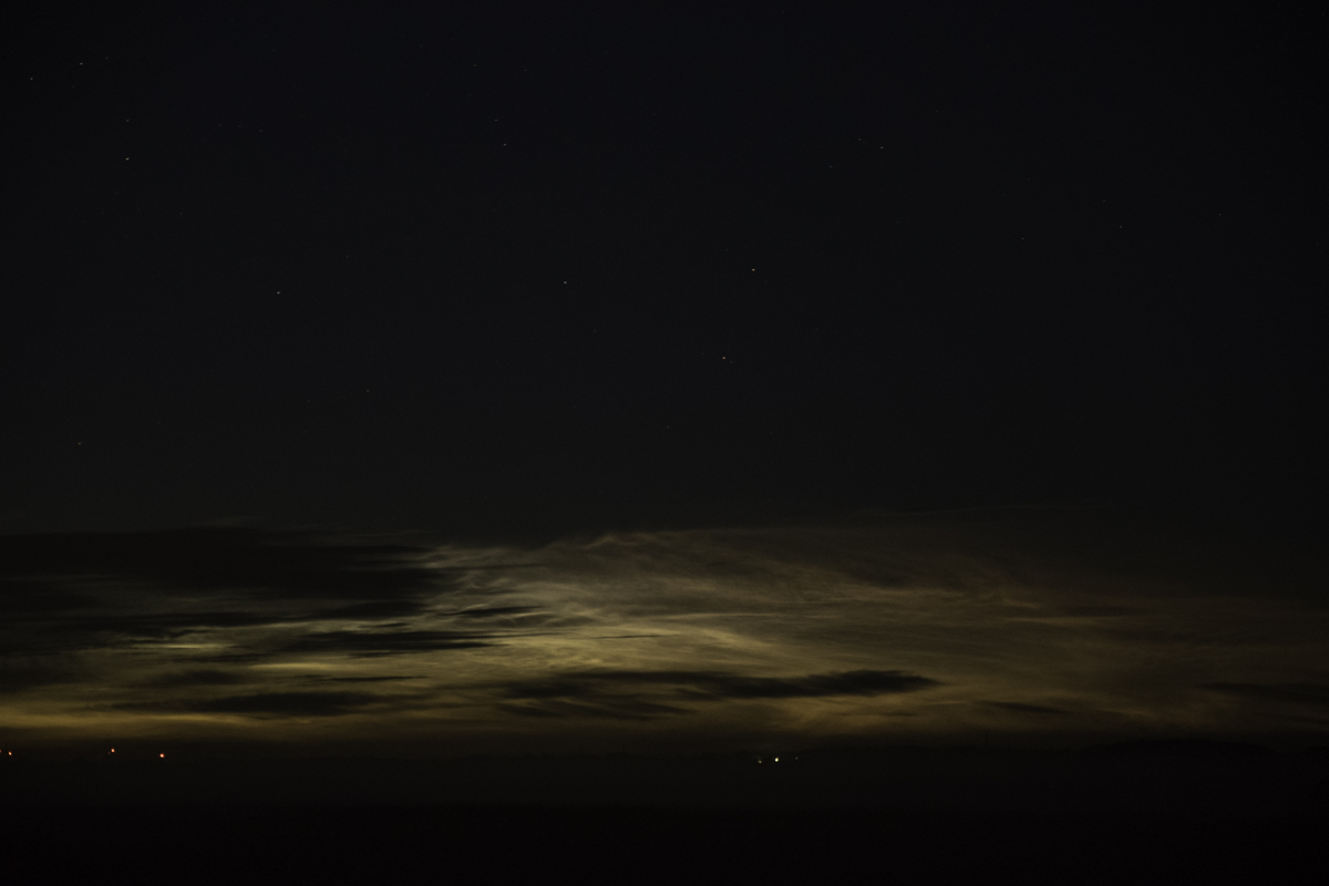 Ach ja, ... am Morgen gab es wieder NLC. Allerdings nur automatisch aufgezeichnet und nur recht schwache Dämmerungszipfel. Jedoch höher als am Abend.