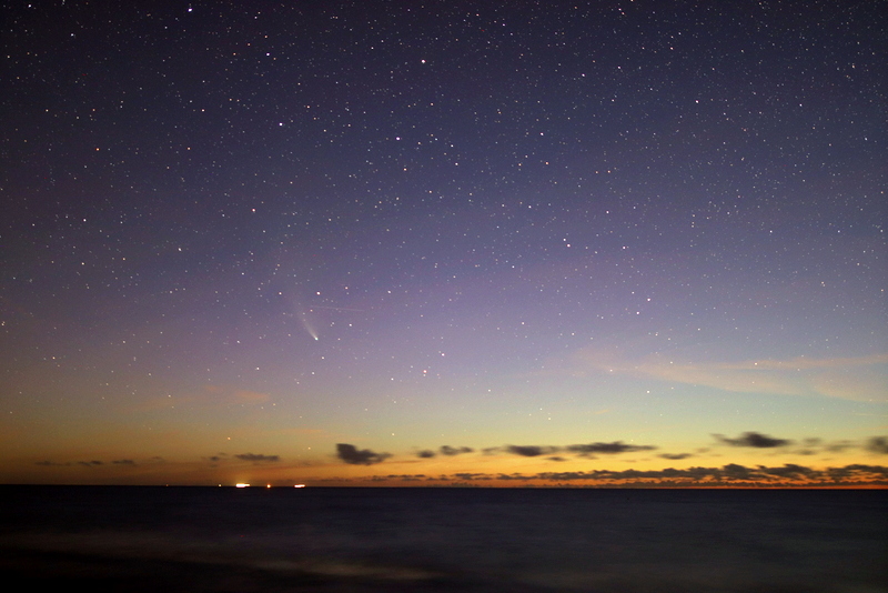 Habe mich dann von Neowise verabschiedet, jetzt wohl endgültig. In der Hoffnung auf ein fotogr. Polarlicht bin ich bis 0:30 UTC draussen geblieben. Polarlicht gab's wohl nicht, aber immer hin etwas airglow. Siehe Bild 2803-001 unten (Sättigung erhöht).