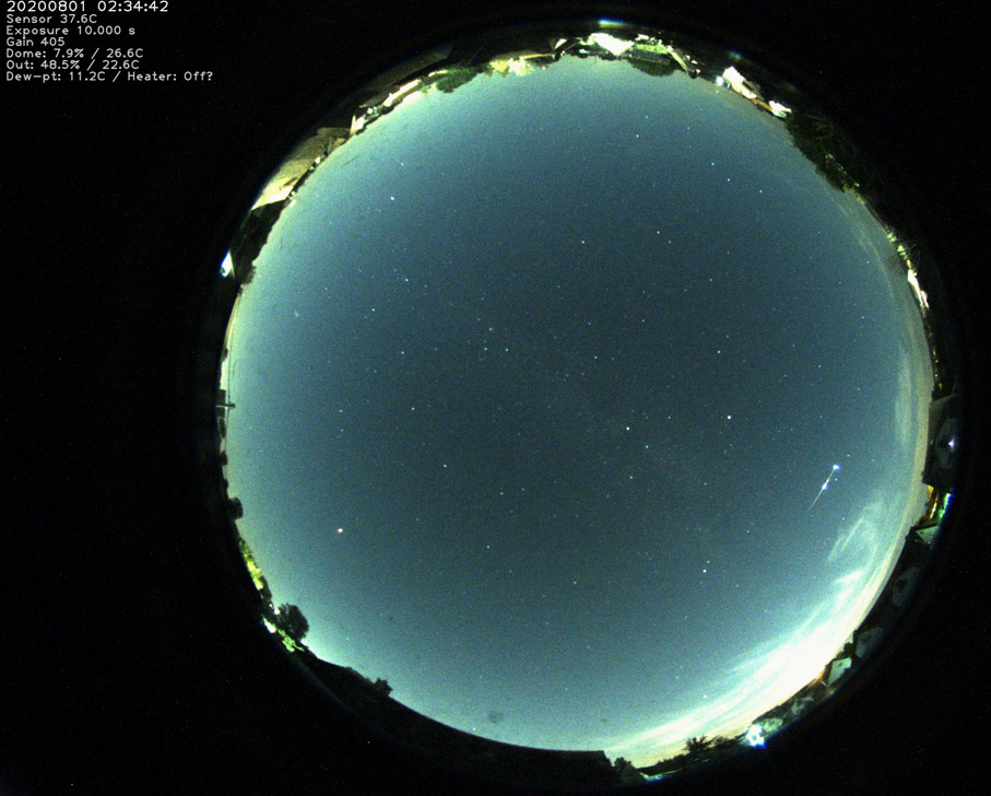 Meteor mit Endblitz und Nachleuchten Richtung NW
