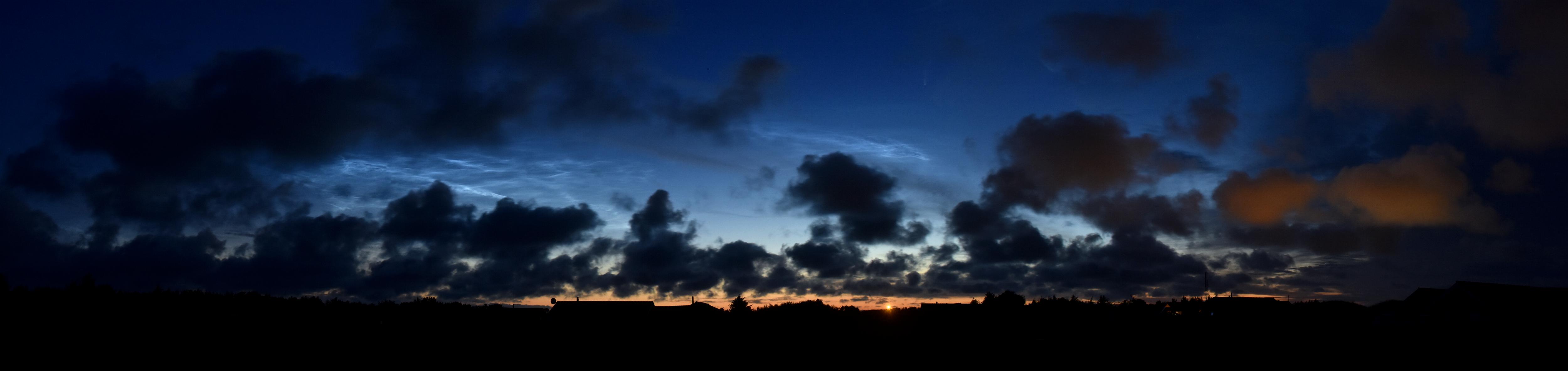 Und mit den dezenten NLCs in den Lücken der dramatischen Wolken sieht das sogar ganz hübsch aus ... hier in Dänemark. 2 Panos mit 4 und 5 QF bei 18 bzw. ca. 35 mm. Auf der ersten Aufnahme befindet sich Neowise etwas rechts über dem Leuchtfeuer von Hirtshals.