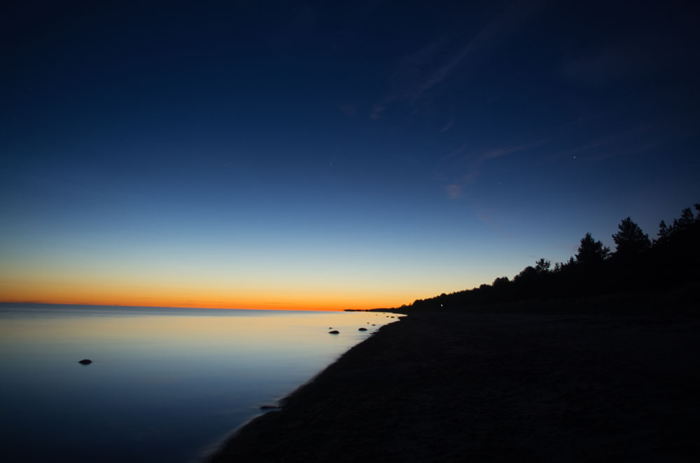 In Lettland habe ich an dem Abend schwache NLC gesehen und fotografiert, erstmals auch fotografisch Neowise erwischt. Ich hatte selber kein Telefon dabei, und meine Mitreisenden waren keine Astro-Leute. Daher war es schwierig, an Informationen zu kommen, und der immerwährend helle Himmel machte es wirklich schwer. Der Lichtpunkt war sicherlich sichtbar gewesen, wurde aber unbewusst als Stern interpretiert. Für den Schweif reichte der Kontrast visuell nicht. Die NLC waren aber visuell erkennbar. Beobachtungsort war Salacgrīva/Salismünde (57°46' N, 24°21' E).
