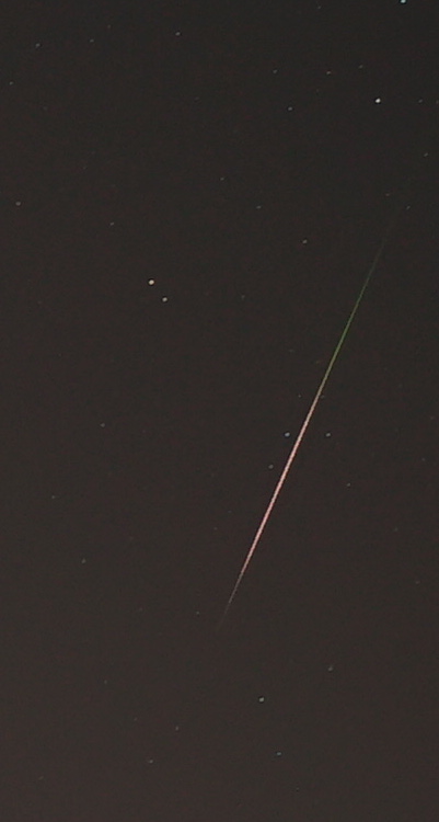 ...und noch ein Beifang (wieder mit Grünanteil) während der Nordhimmelüberwachung vom 10. auf 11. August 2020 (22:31 UT), aufgenommen mit Sony Alpha 7s + 2/50 mm + Dydim. 5"-Belichtung bei sehr mäßigen Sichtbedingungen und ISO 800.