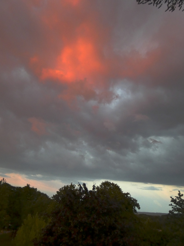 Gestern abend gab es das Abendrot hier mal im Süden. Da wurde eine ausgedehnte Gewitterwand von der untergehenden Sonne beleuchtet.