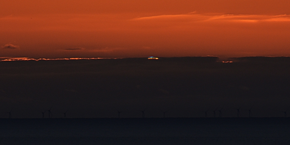 Schöner Sonnenuntergang in einer Wolkenschicht überm Horizont gestern Abend.