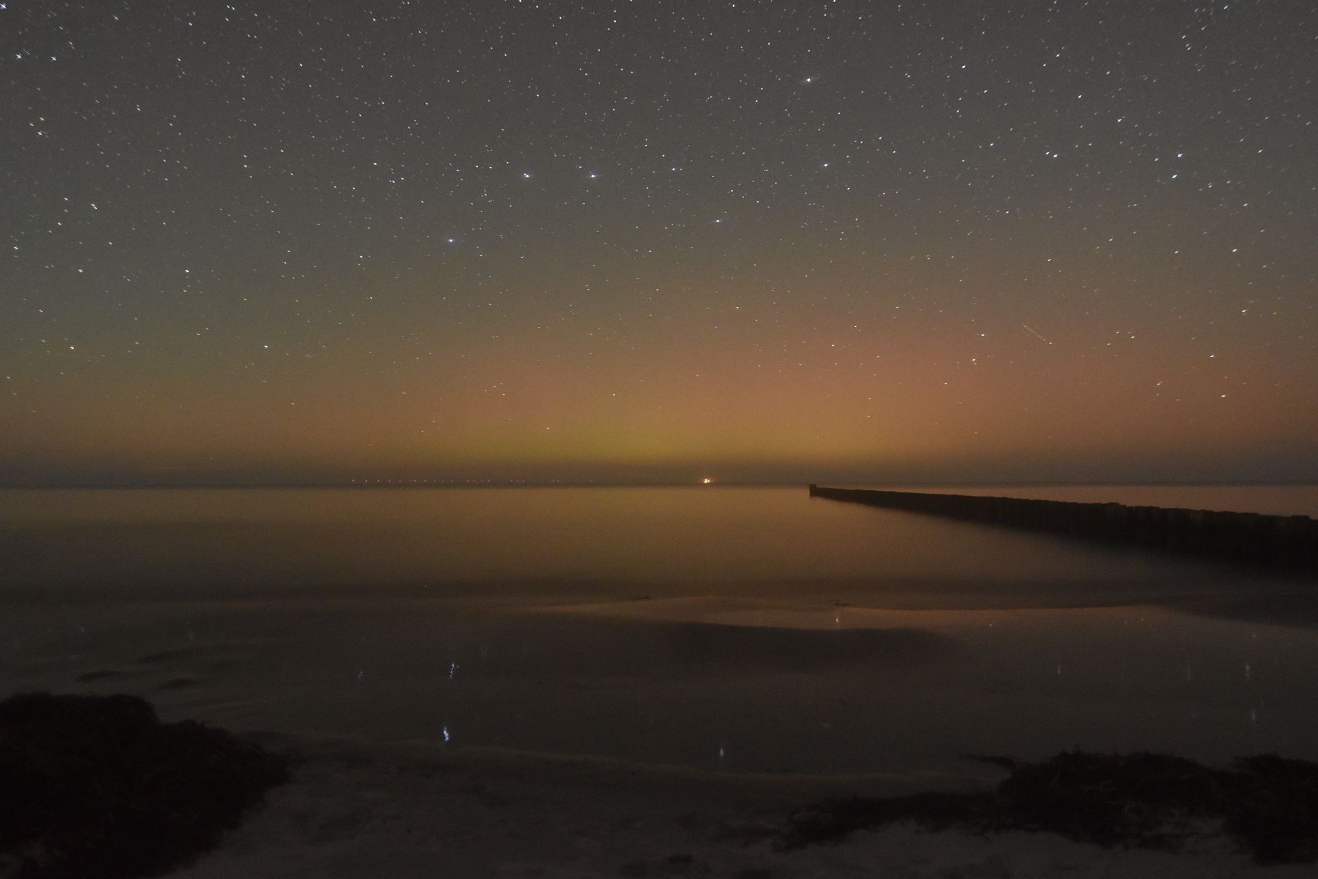 Hier in Zingst seit einer halben Stunde fotografisches Polarlicht, bin mir eigentlich zu 100 % sicher, aber da ich noch nie Polarlicht fotografiert hab eher 90 %.