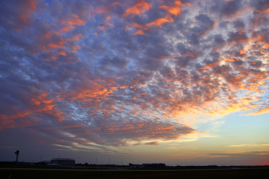 Schöner Sonnenuntergang in einer Wolkenschicht überm Horizont gestern Abend.