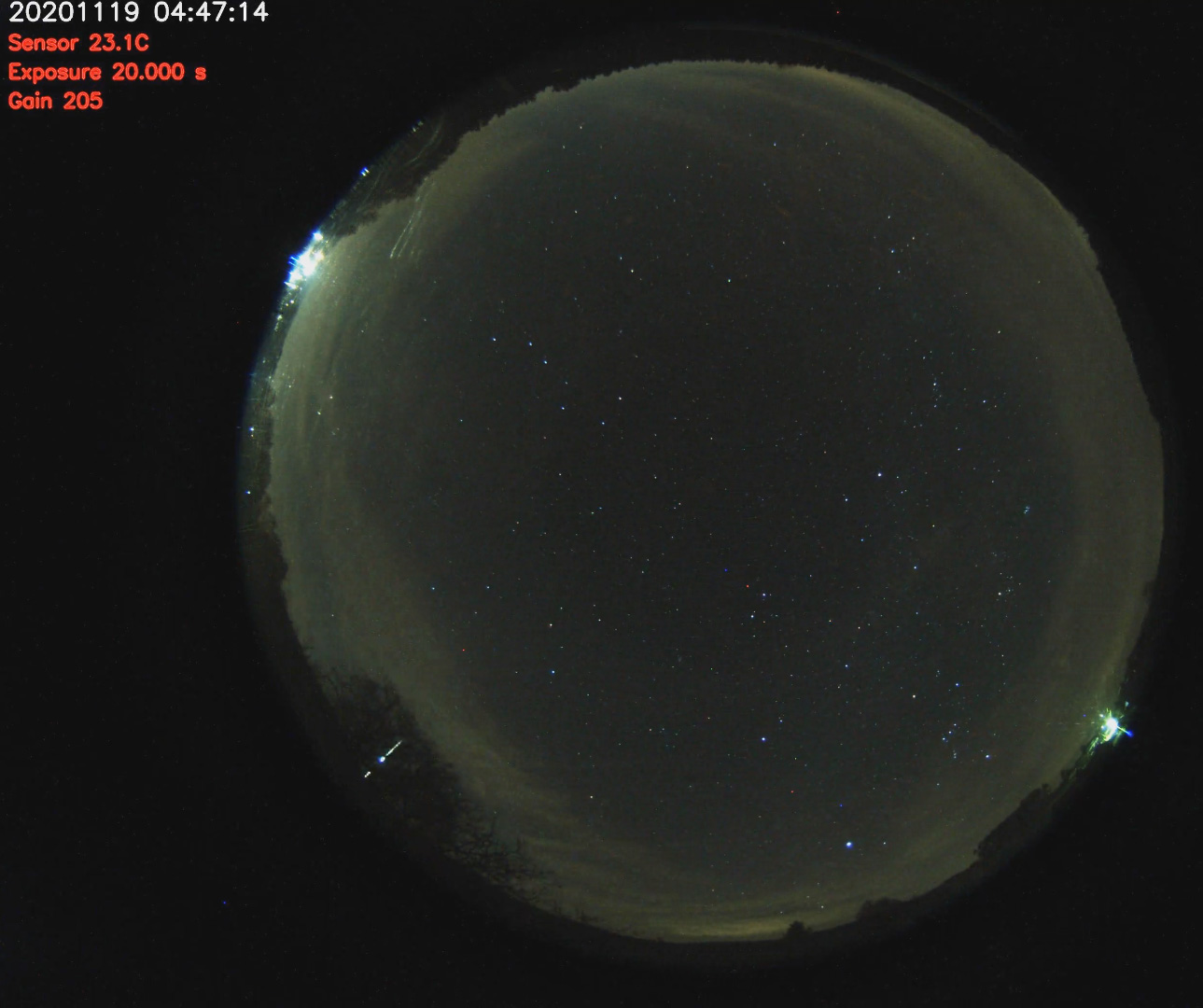 In Rotheul durch leichte Bewölkung deutlich erkennbar: [Edit: Der Meteor in Röthenbach ist eine kleinere FK exakt 1 Stunde vor dem Boliden gewesen...ich ging der Annahme dies ist UTC<->MEZ Unterschieden bei der Kamerakonfiguration geschuldet.]