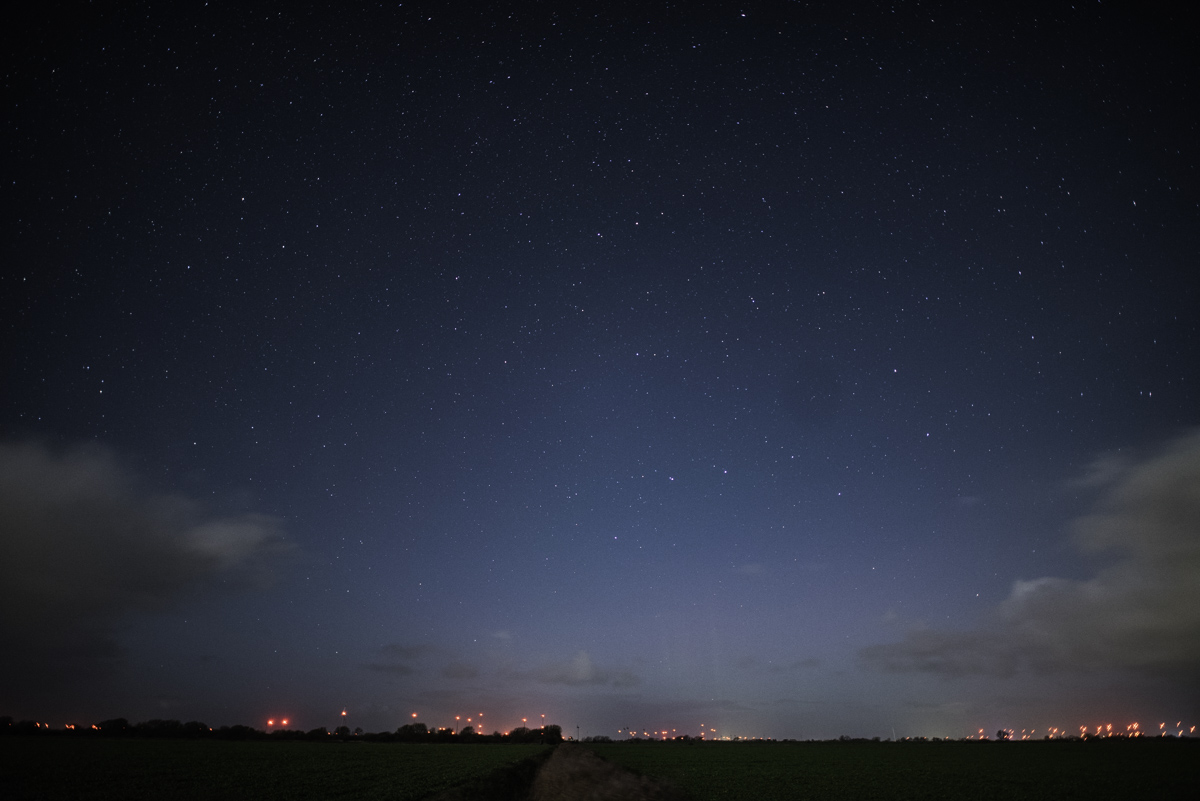 Meine Aufnahmen entstanden in der Zeit von 21:30Uhr - ca. 22:00Uhr. Anfangs konnte ich wirklich nur ganz zaghaft fotografisches Polarlicht nachweisen. Es ist mir auch nur beim schnellen durchscrollen der Bilder aufgefallen. Deshalb habe ich neben einem Bild auch ein kurzes Zeitraffer Video mit angehängt.