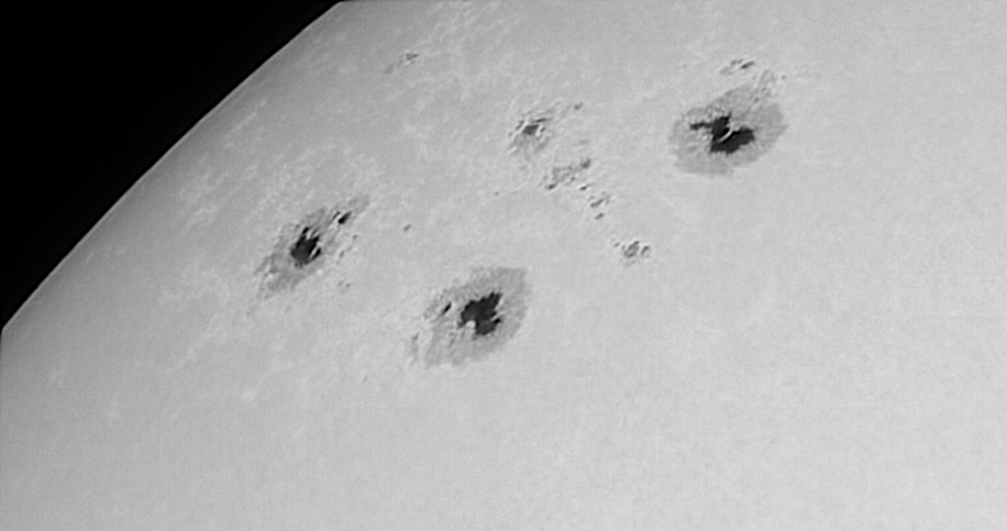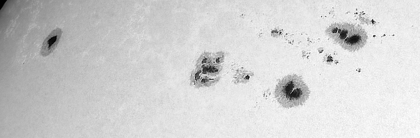 Machst du auch Aufnahmen der gesamten Sonne? Das wäre insofern interessant, als dass dann ein Eindruck der relativen Größe der Flecken zur Verfügung stünde.