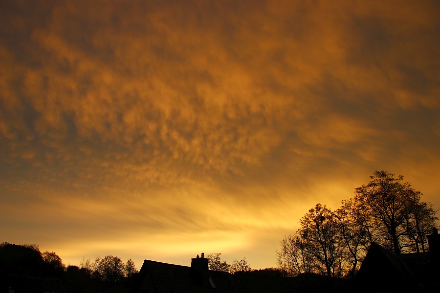 Zuerst heute mittag um 13 Uhr eine linke Nebensonne. War nur 10 Minuten lang zu sehen, aber ich habe sie erwischt: Und dann vorhin noch einen sehenswerten Sonnenuntergang: gefolgt von einem nur flachen, aber intensiven Abendrot: Grüße