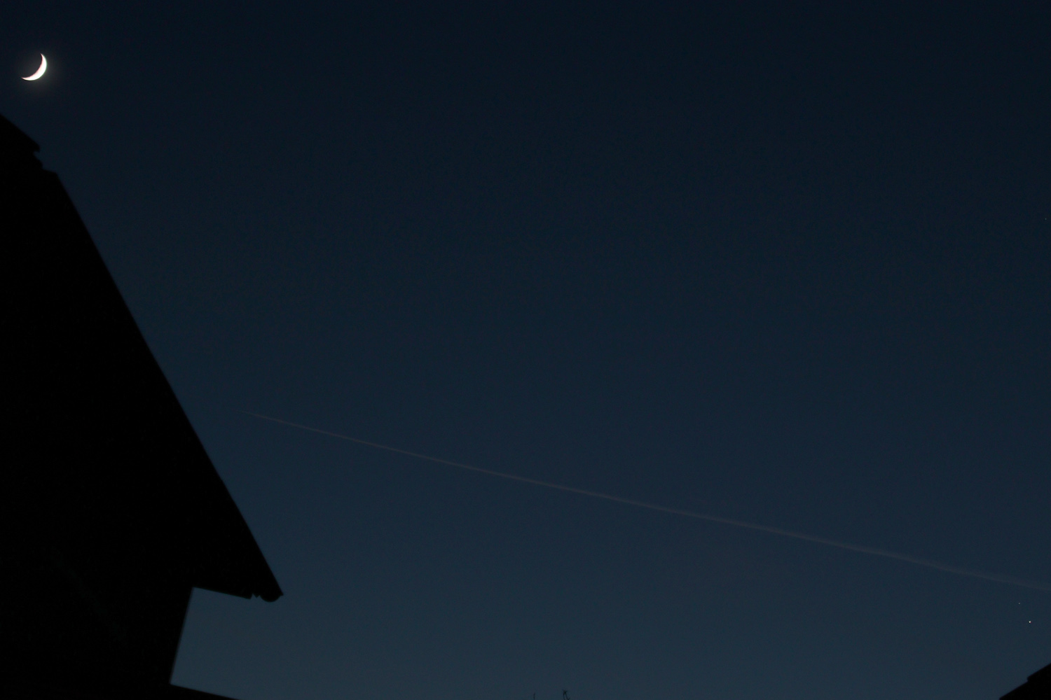 Und nicht vergessen: HEUTE steht die schmale MONDSICHEL links von Jupiter und Saturn!