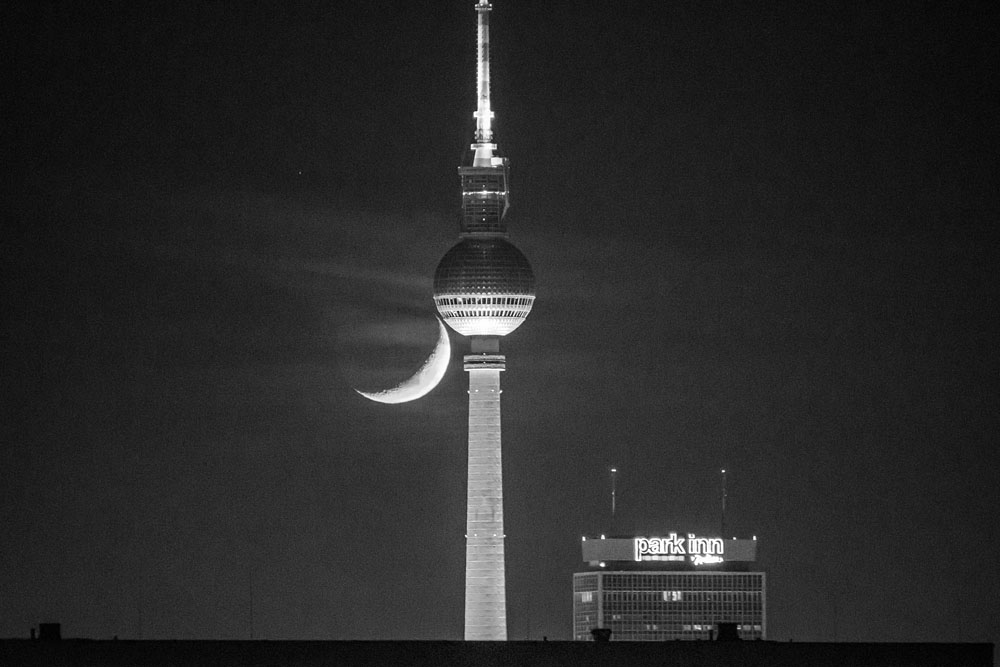 am 18.12. (der Lichtpunkt zwischen Planeten und Turm stammt von einem Hubschrauber)