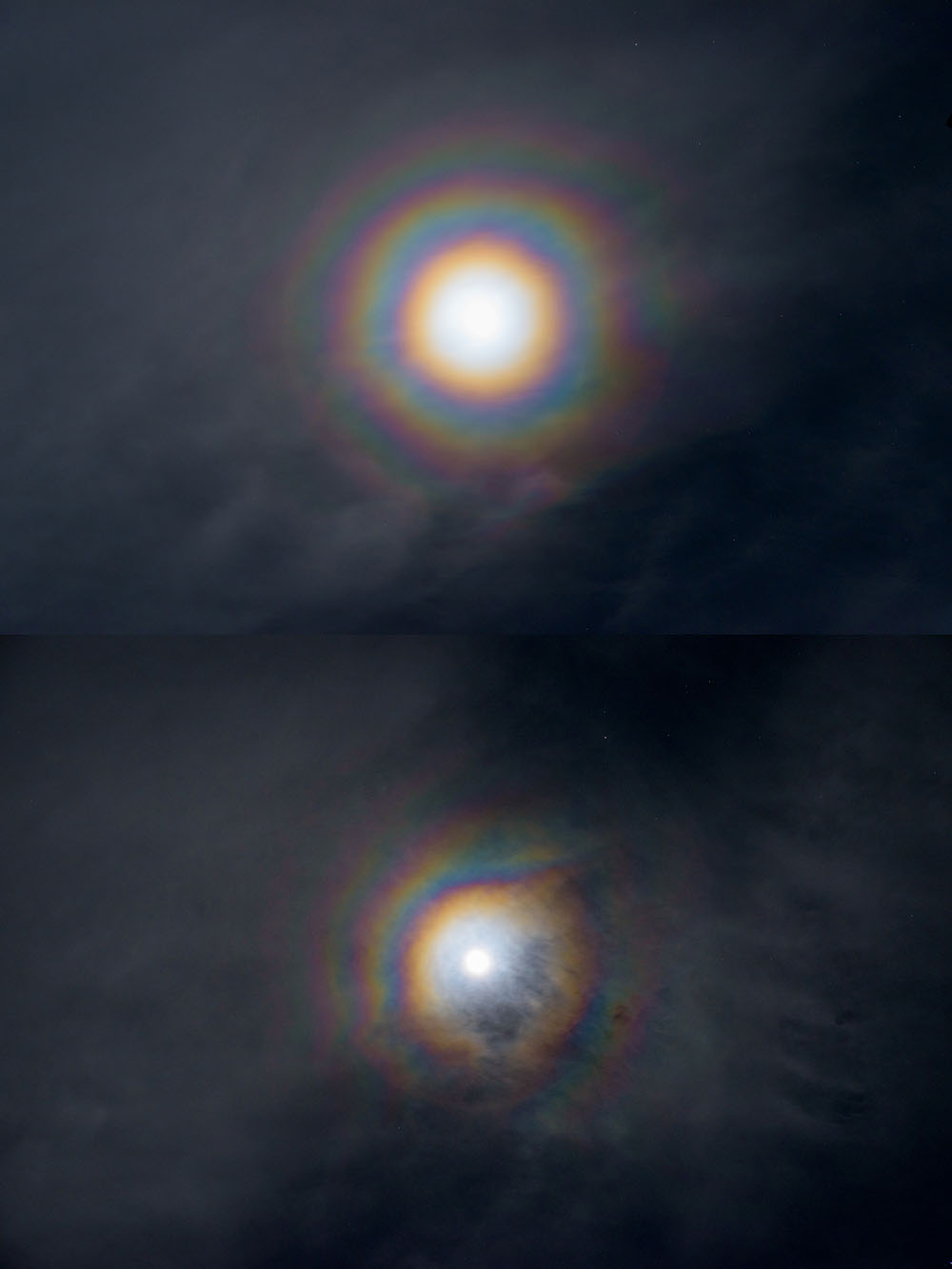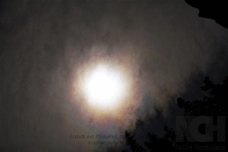 Gestern Nacht am 27.01. zeigte sich eine sehr intensive Aureole um den Mond an einem tiefen Ac str