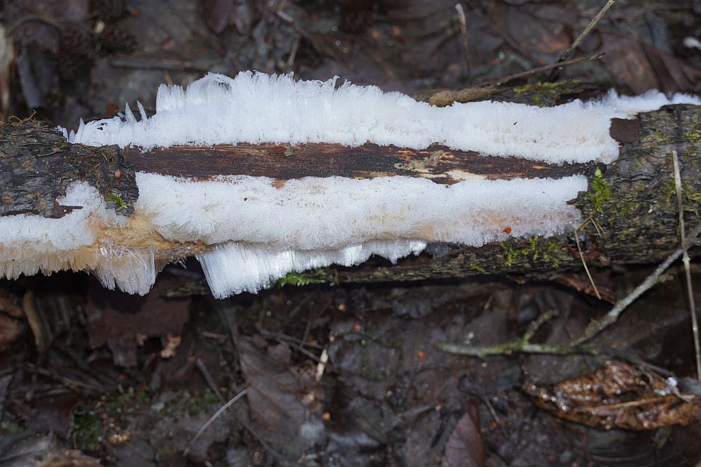 Seit gestern habe auch ich wieder einen Haareiszweig auf der Terrasse liegen. "Treibt" dieser aus, weiß ich, wann sich ein Ausflug in unseren Hauswald zwechs Haareissuche lohnt. Und schon jetzt produziert dieser ordentlich Haareis:
