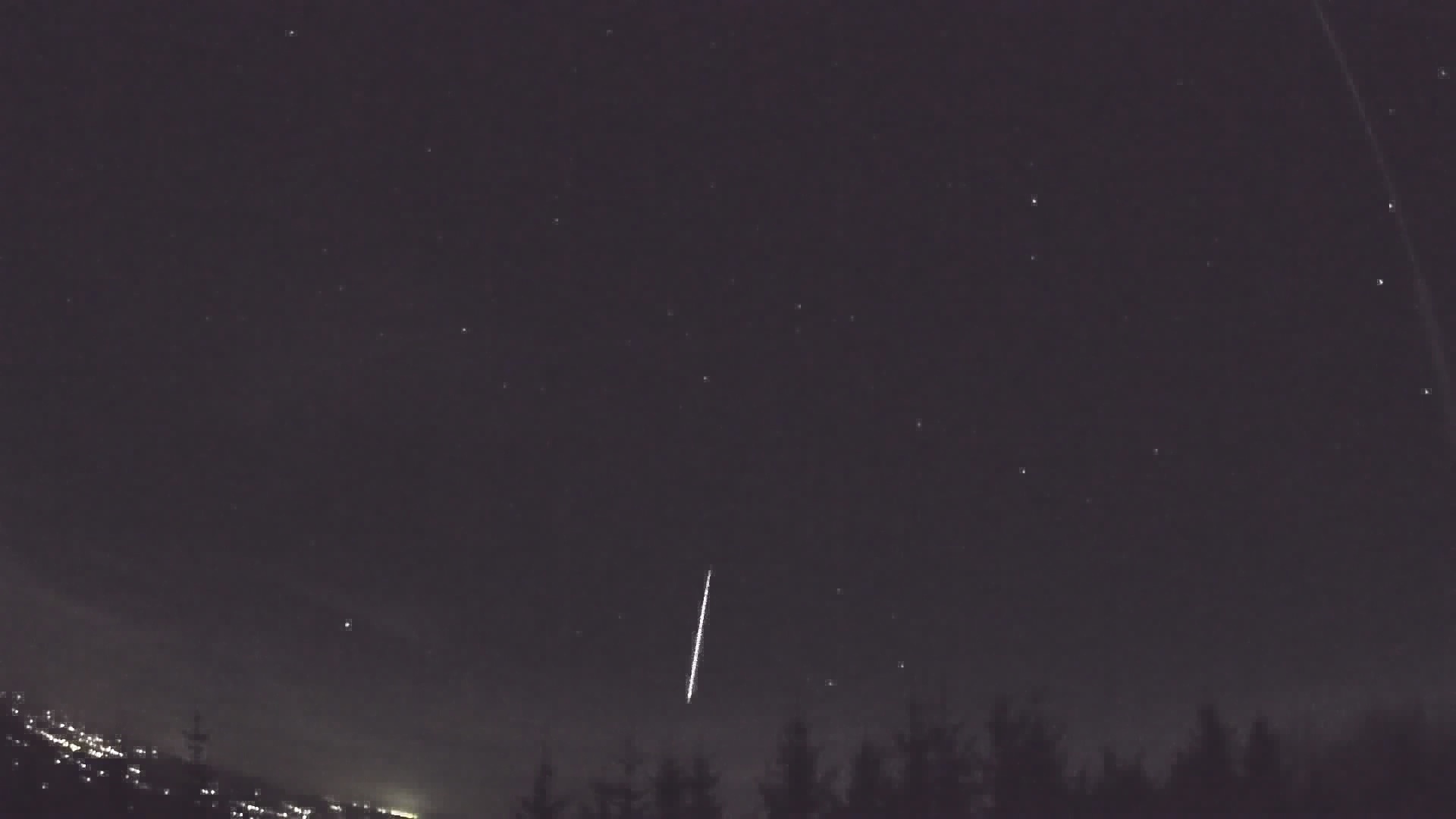 Also wenn wir uns beim Aufleuchtzeitpunkt auf 20:08:19 MEZ / 19:08:19 UTC einigen könnten, dann ist es dieser helle Meteor, von einigen unserer AllSky7-Stationen aufgezeichnet. Hier als Beispiel Anfang und Ende von Drebach aus (Beginn also in der Nähe des Mondes in Drebach) in südlicher Richtung und als Kontrast dasselbe Meteor von Salzburg aus in nördlicher Richtung.