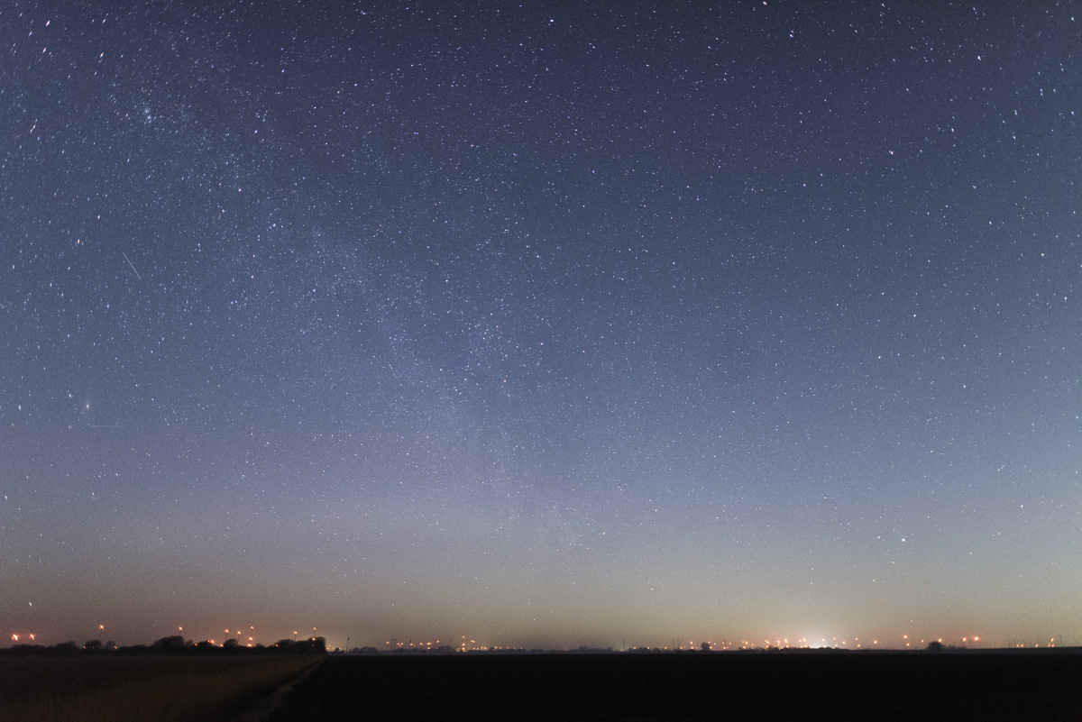 Nachdem die letzten beiden Tagen buchstäblich in die Nebelsuppe fielen, hatte ich heute Abend deutlich bessere Beobachtungsbedingungen. Trotzdem war der Hochnebel nördlich der Eider ausreichend, um die Sicht auf das PL entsprechend zu behindern.