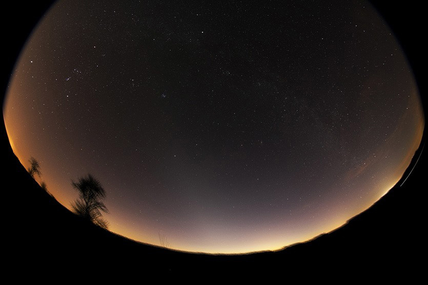 Zodiakallicht am 14.02.2014; Aufgenommen mit Nikon D5100 und Fisheye 3,5/8; 5 Aufnahmen je 2 Min. addiert; ISO 1250
