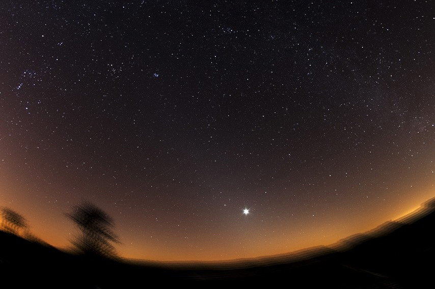 Zodiakallicht aufgenommen am 15.02.2017 mit einer Nikon D5100 und Fisheye 3,5/8; 5 Aufnahmen je 2 Minuten addiert; ISO 1250