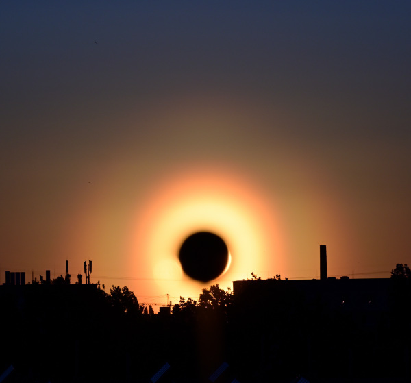 Zur Zeit (13:40 MESZ) ist hier in Heidelberg eine extrem helle Pollenkorona zu sehen: drei (rote) Kreise sind problemlos mit bloßem Auge (ohne Sonnenbrille, bei abgedeckter Sonne) zu sehen. So eine intensive Korona habe ich bisher noch nicht gesehen!