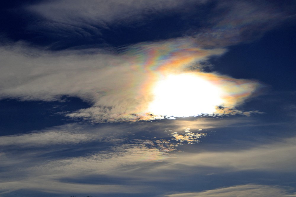 heute Mittag so zwischen 13.30-13.45 Uhr waren hier irisierende Wolken zu sehen.