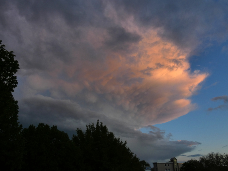 Am 21.05. zog zum Sonnenuntergang in Hemmingstedt der Ansatz einer Shelfcloud über mich hinweg. Es sah bedrohlicher aus als es war. Der Wind frischte lediglich etwas auf.