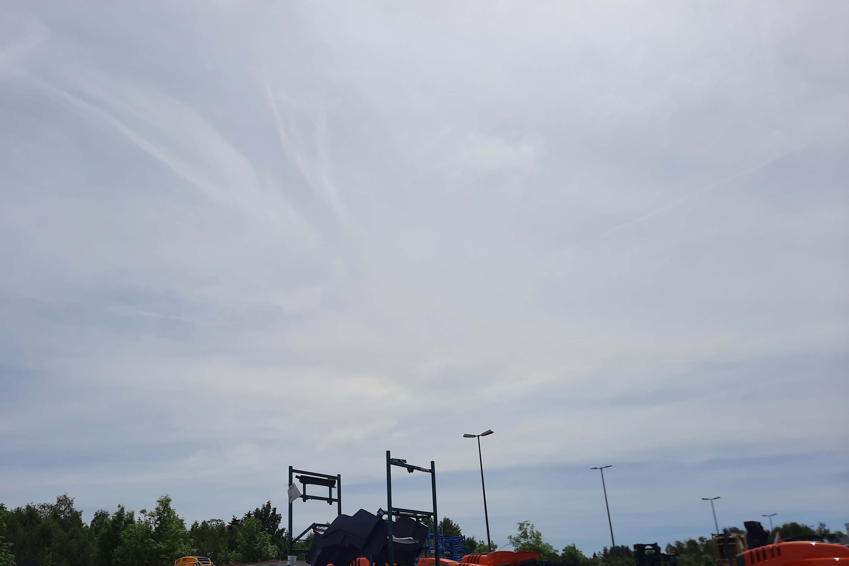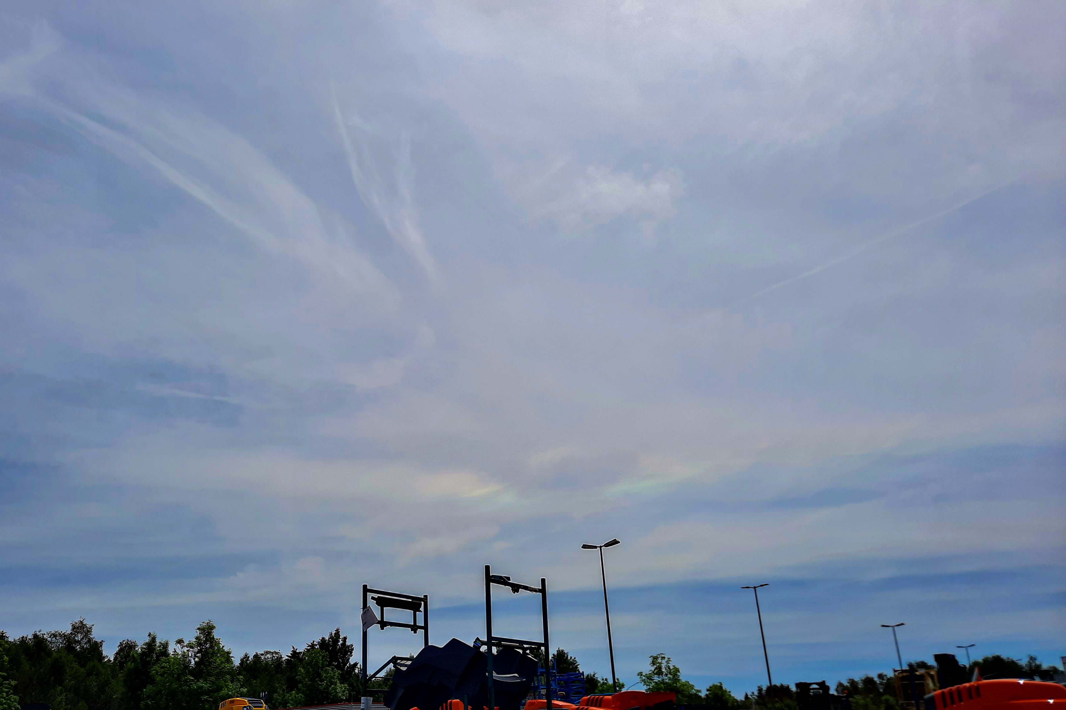 Nach dem Mittagessen war ein schwacher h0 ZHB über dem Werksgelände zu sehen. Ich habe ein schnelles Foto mit dem Handy gemacht und bin dann schnell zum Parkplatz, um noch ein Bild mit der großen Kamera zu machen. Bis dahin war er fürs Auge bereits wieder verschwunden. Durch die Bildbearbeitung mit starker Sättigung und USM ist er aber trotzdem noch zu erkennen.
