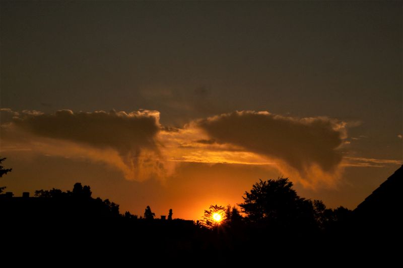 Heute zogen aus Südwest nun auch im Osten Österreichs schwere Gewitter mit Hagelschlossen so gross wie Hühnereier durch. Am Rande des Monsters konnte ich ein paar Aufnahmen direkt über unserem Haus machen. Mächtige Mamaten zeigten sich, wie ich sie noch nie gesehen habe. Der Aufstiegsschlot war genau vor mir, es gab aber nur 1mm Regen, während es ein paar Kilometer weiter heftig einschlug und hagelte. Später konnte ich den Cb von hinten fotografieren als er Richtung Nordost abzog. Später zeigte sich der Himmel romantisch versöhnlich mit herrlichen Dunststrahlen, als wenn nichts gewesen wäre.