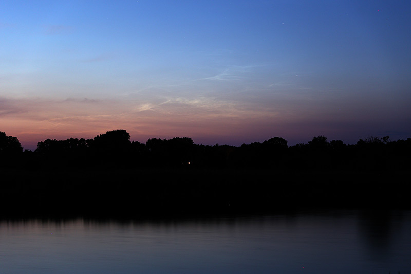 Ich war heute auch mal wieder draußen, es gibt doch nichts Schöneres als Routine und Tage, die so sind wie der Tag davor und der Tag danach. Daher ging es auch heute wieder routiniert auf die Jagd nach Leuchtenden Nachtwolken und das besonders schnell, weil sich auf den Satelliten und Radarbildern der Wetterberichte heranziehendes niederes Gewölk angekündigt hatte und ich meine Chance auf NLC daher vor allem in einem frühen Display sah.