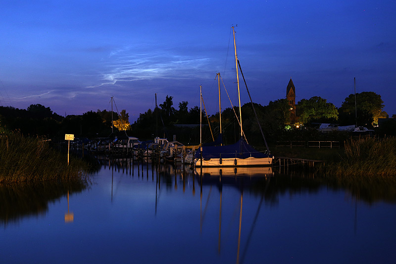 Wardenburg hing (und hängt) leider weiter unter Wolken. Da es aber nach 23 Uhr noch mal so aussah, als klare der Himmel auf, bin ich dann doch noch mal los. Der Blick Richtung Norden war nicht so wirklich toll, viel Gewölk. Trotzdem konnte ich noch leichte Strukturen von NLC einfangen. Ab 23:50 Uhr MESZ kann man erste Anzeichen erkennen. Eine knappe halbe Stunde später war es dann wieder zugezogen.