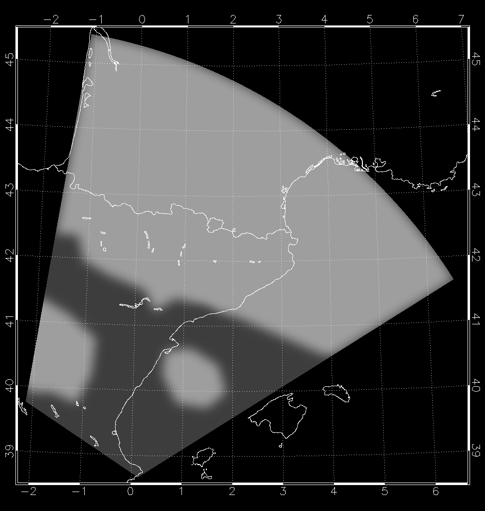 Hier die von mir nachgezeichnete Lage der NLC um 03:50:43 UTC und 04:05:58 UTC (Bilder siehe Video. Zur Orientierung: links Spanien, oben Frankreich und die Balearen am unteren Rand der Karte):