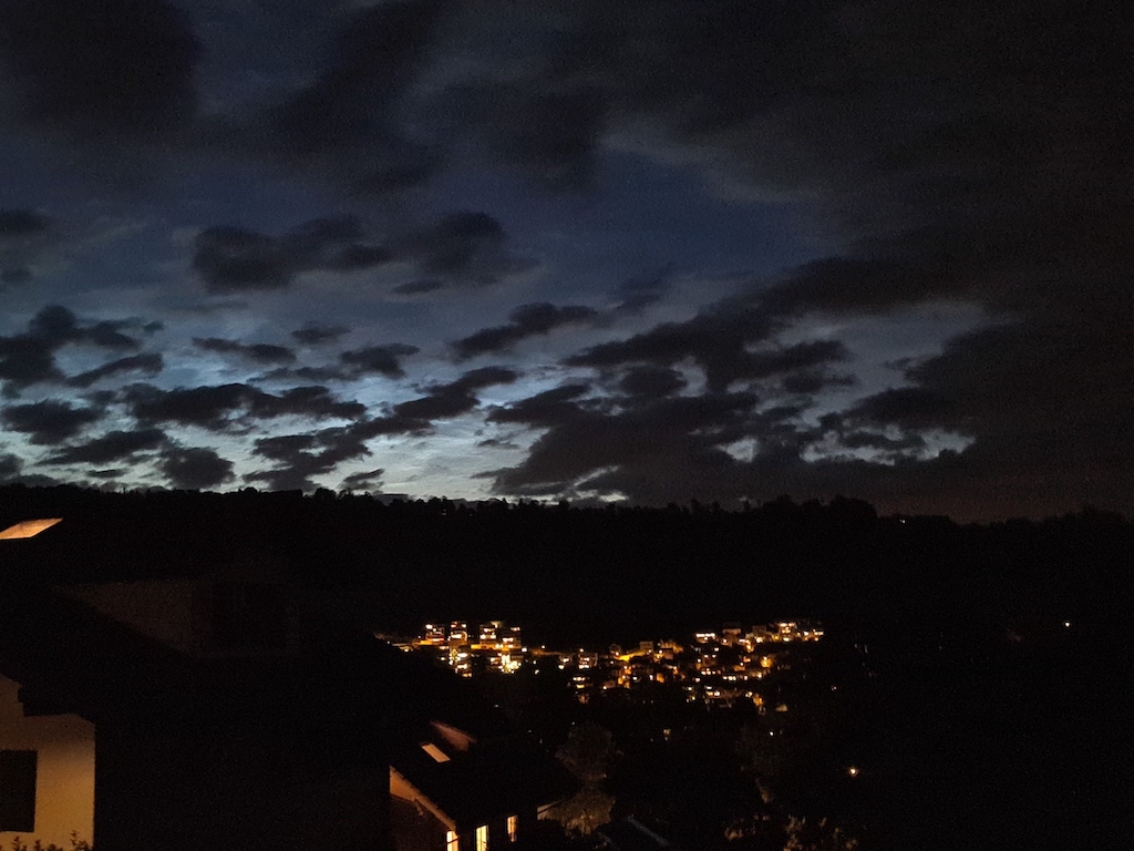 Die Höhe lag, grob geschätzt, bei mindestens 40°. Aktuell sind in N über dem Horizont noch Reste zu sehen.