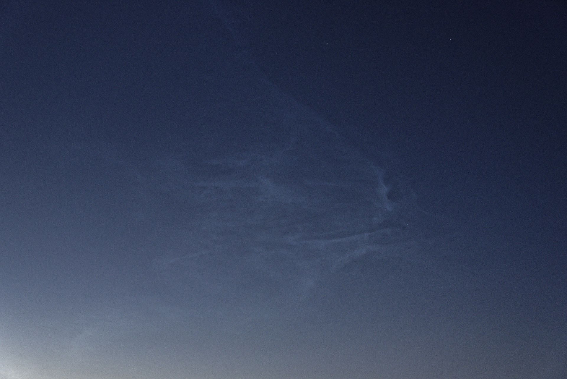 Die GANZE Nacht hing bis auf 20-30 Grad ein Wolkenband herum. Nur einmal konnte ich gegen halb 12 kurz NLCs erhaschen. Nicht der Rede wert - aber der Vollständigkeit halber soll es hier genannt werden.