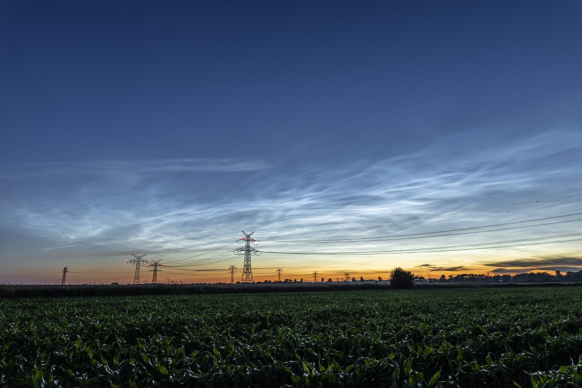 Danke für die vielen schönen Fotos! Das war ja wirklich ein wunderschönes NLC-Ereignis in der letzten Nacht. Knapp östlich von Hamburg war das leider ein wenig durch ein dichtes Zirrusfeld beeinträchtigt. Deswegen wich ich für die zweite Hälfte in die Nähe von Lübeck aus, und das hat sich richtig gelohnt!