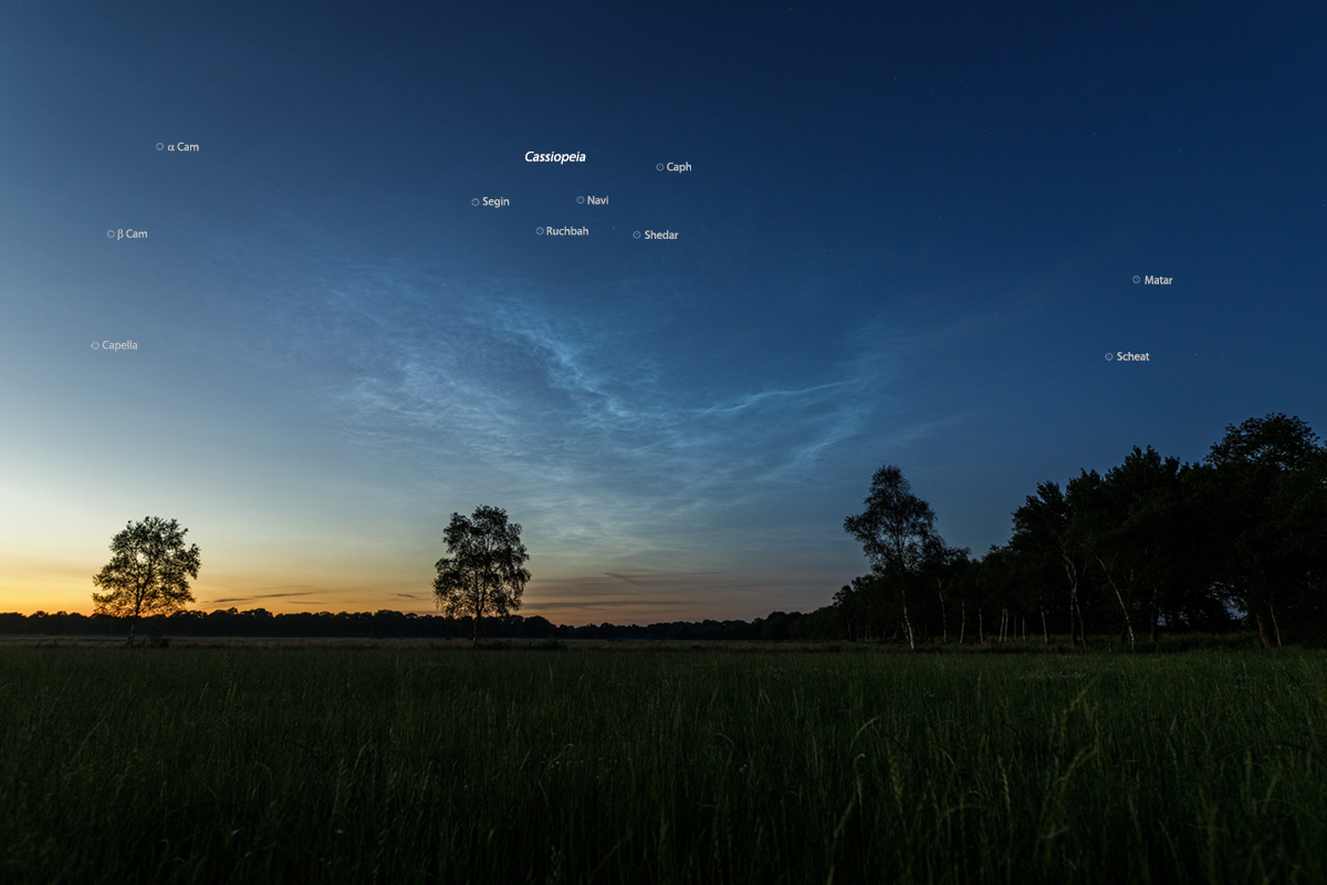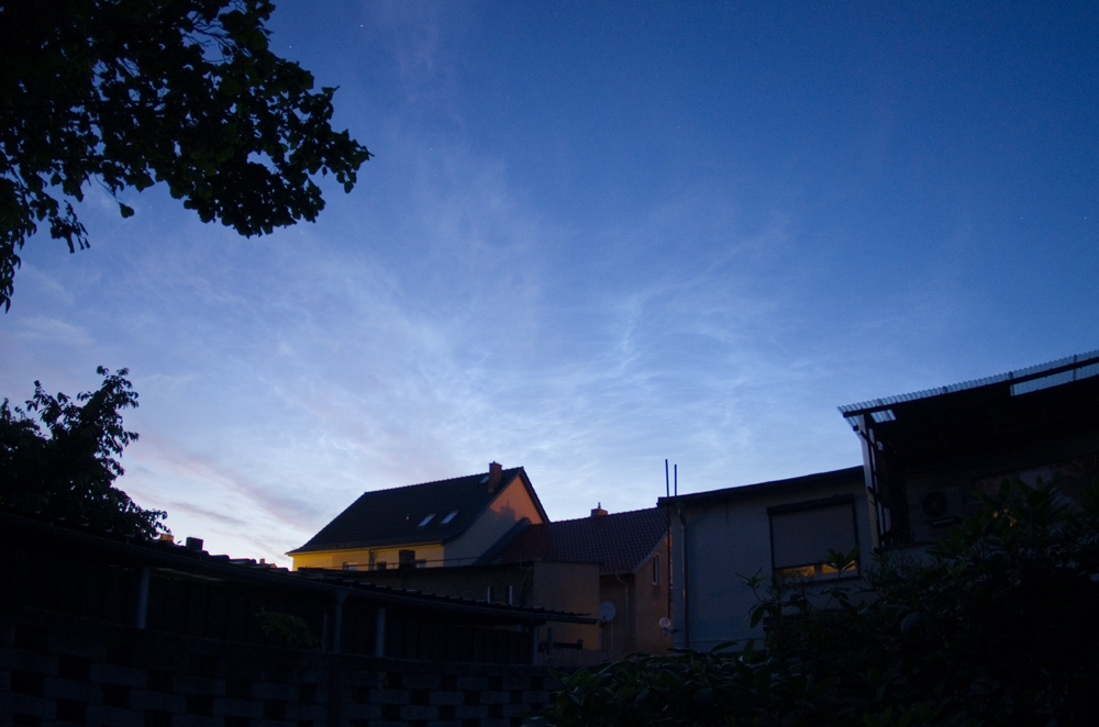 Vorbild von Michael Theusner) versucht. Leider verblassten die NLCs gegen 23:30 Uhr (MESZ) (Sonnenstand bei -10,3°, unerwartet früh!) so schnell und so deutlich, dass uns nur noch sehr schwache gemeinsame Aufnahmen gelungen sind, die zum angedachten Zweck nicht wirklich taugen… die nächste Chance kommt sicher, wenn auch erst in bald einem Jahr.
