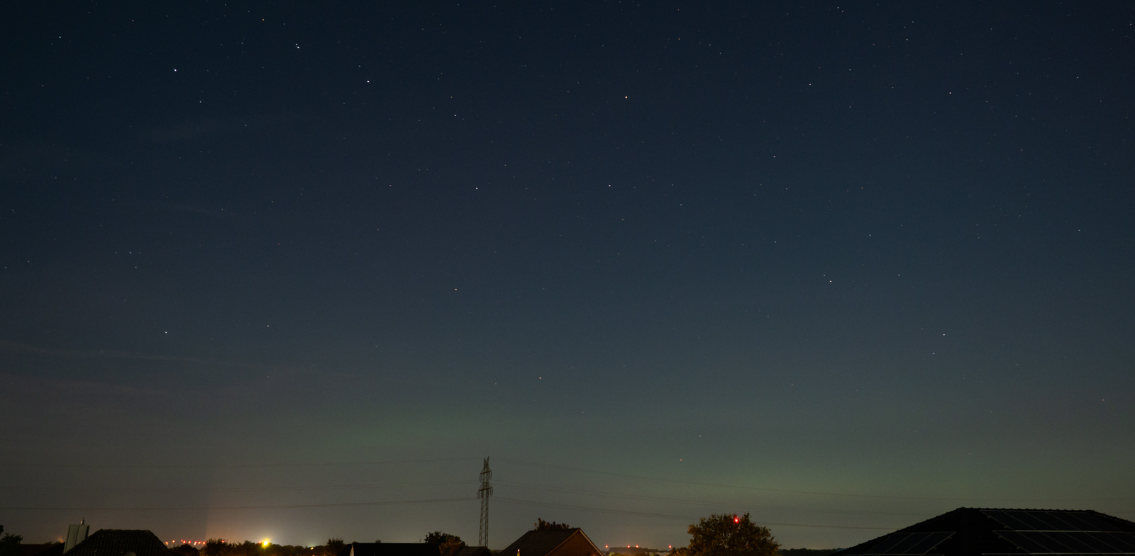 Ich war vergangene Nacht auch unterwegs und bin über die Landesgrenze hinaus ins schöne Niedersachsen gefahren, um es mir mal wieder an meinem favorisierten Beobachtungspunkt gemütlich zu machen. Hier war ich nun schon oft und in der Folge der Meinung, dass sich dieser Spot recht gut für die PL-Beobachtung eignen sollte. Nun kam es, wie es kommen musste: Zur angenommenen Hauptaktitvitätsphase des Polarlichts, hatte ich mit größeren "organisatorischen Problemen" vor Ort zu kämpfen, die wohl hätten vermieden werden können. Trotz allem Ärger, durfte ich heute früh feststellen, dass mein (vor Ort erkannter) Verdacht, rund um 22:10 MESZ, via Nachbetrachtung (und Bildentwicklung) nun zufriedenstellend belegt und als sicherer Nachweis bezeichnet werden kann: