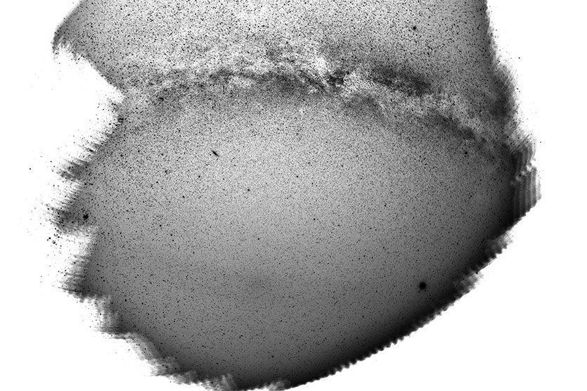 Im schwarz-weiss Modus lässt sich eine Aufspaltung der Lichtbrücke in 2 horizontale Komponenten auf der linken Seite erahnen.