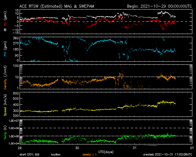 Tante Edit hat den Plot auf 24 Stunden bis zum 1.11. morgens erweitert, um den Verlauf der Sonnenwindwerte in der (möglicherweise PL-) Nacht besser überblicken zu können.