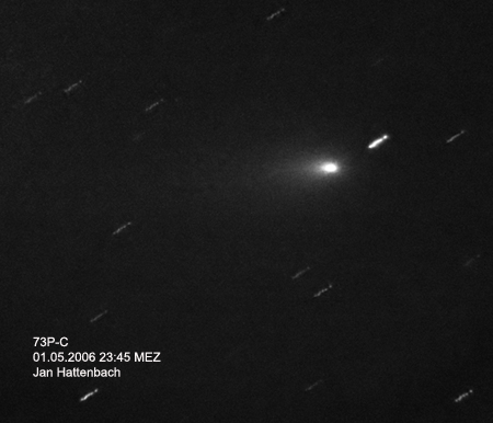 Nachtrag: In meinem Archiv habe ich noch diese Foto des Fragments C von 73P gefunden. Aufgenommen am 1. Mai 2006 am Refraktor der Sternwarte Aachen mir meiner damaligen Digiknipse.