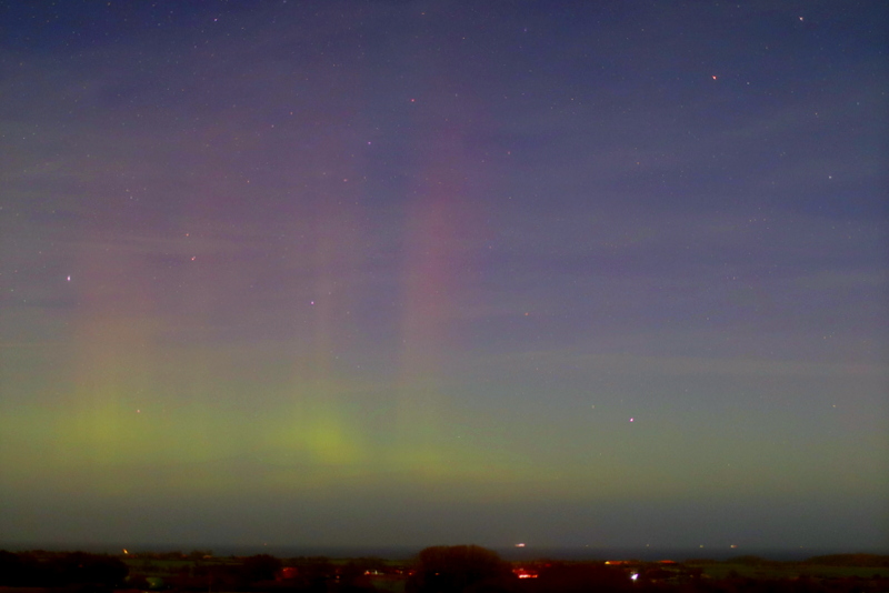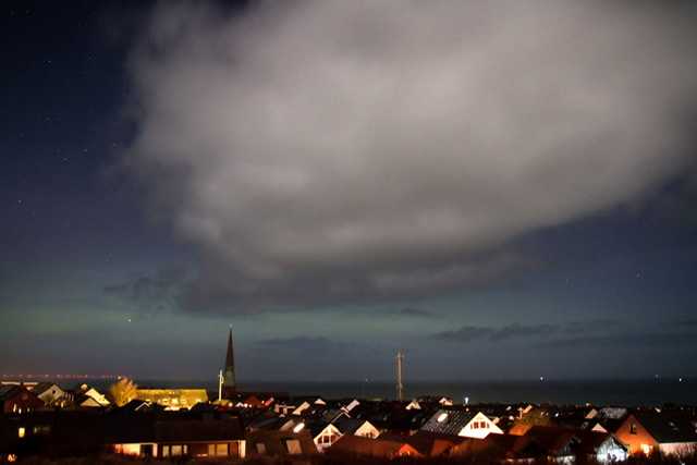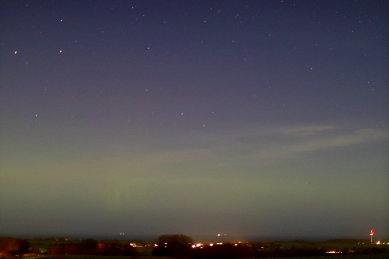 Schwach visuelles Polarlicht in Schleswig Holstein. Aufgenommen gegen 23.45 .