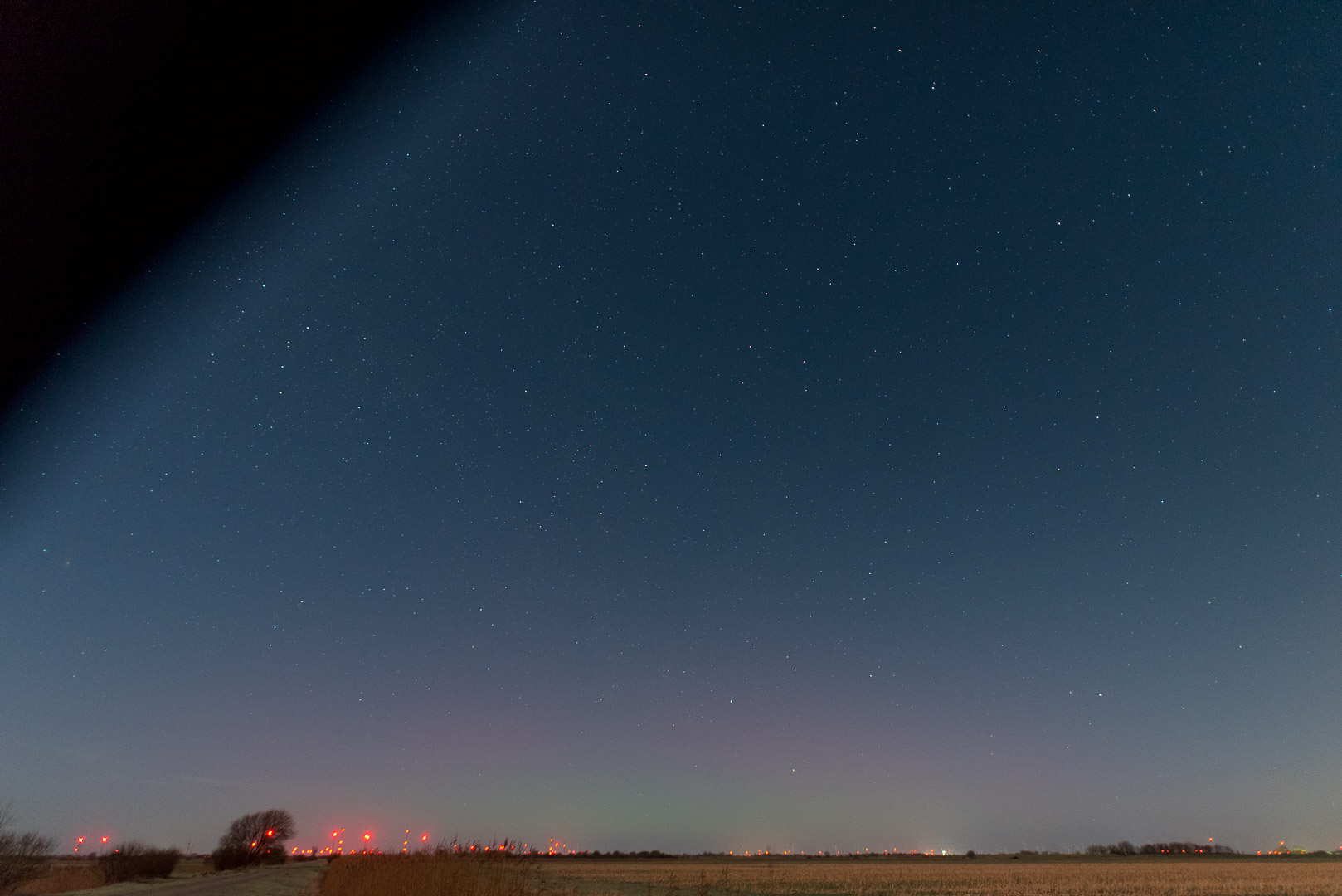 Guten Abend, aktuell ist in meinen Aufnahmen ein grüner Polarlichtbogen zu erkennen. Noch recht dicht am Horizont. Standort in der Nähe von Curau bei Lübeck.