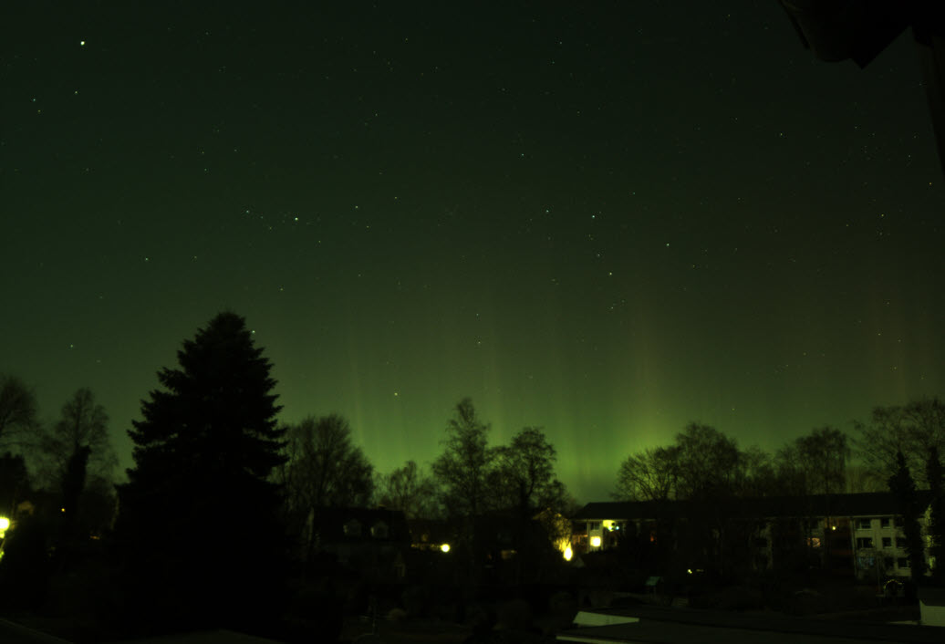In Handeloh an der Sternwarte haben wir geduldig gewartet. Gegen 23:30 MEZ wurde der grüne Bogen erst fotografisch und dann schwach visuell sichtbar.
